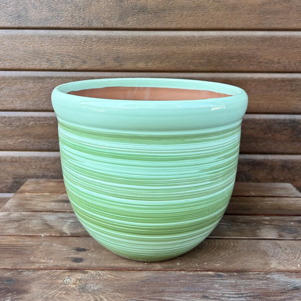 Керамична саксия "Гала нова" в цвят резеда в размер 26/22 см (диаметър/височина). Саксията се изпраща заедно с керамична чинийка. Последни бройки от този вид оцветяване, в което основната част на саксията е в комбинация от резеда и зелено, а периферията е в един плътен цвят.